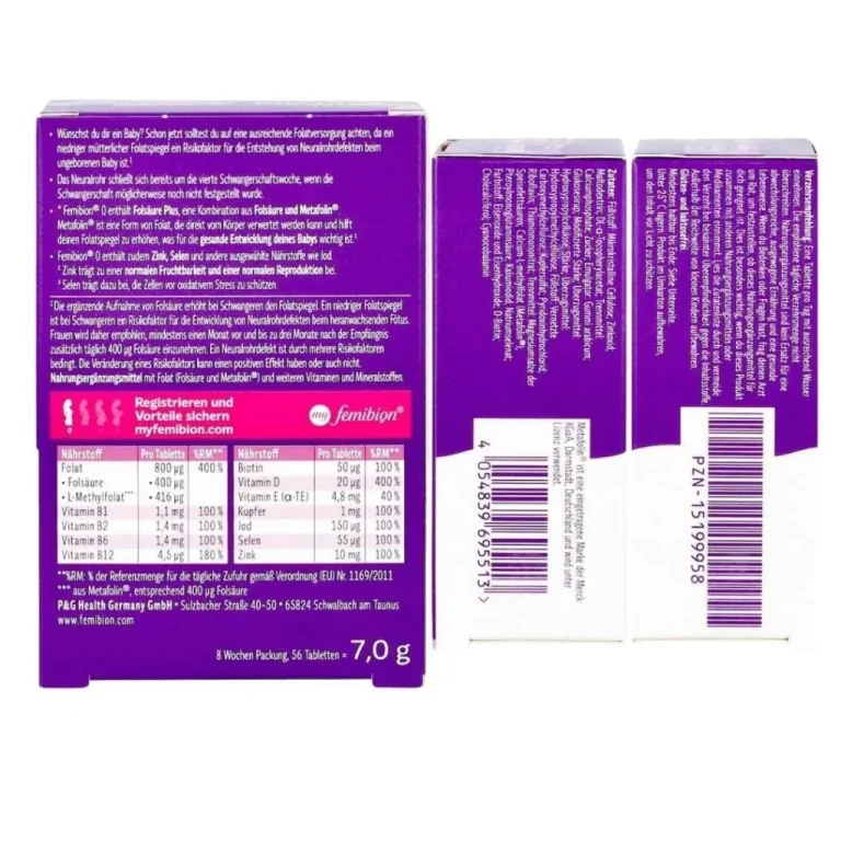 - فمیبیون ۰ BabyPlanung – مکمل پیش از بارداری با فولات پلاس (Folsäure + Metafolin®)